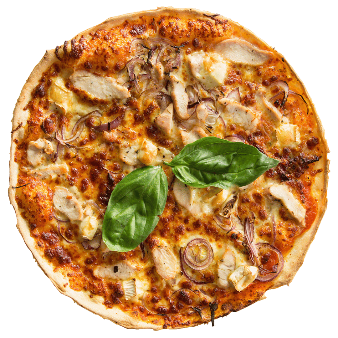 Tender chicken, semi-dried tomatoes, red onion camembert cheese topped with basil