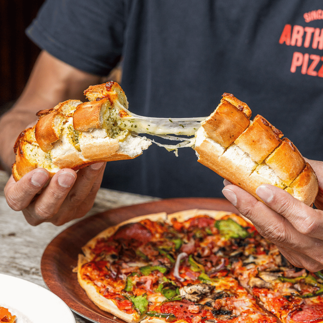 Garlic bread generously topped with gooey, melted cheese—cheesy perfection!